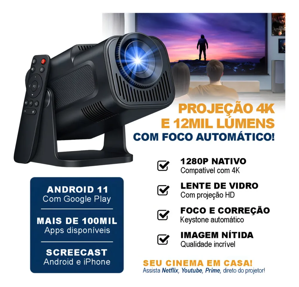 Transforme qualquer ambiente em uma sala de cinema e junte-se a milhares de clientes satisfeitos! Aproveite ofertas exclusivas por tempo limitado e receba em casa com garantia oficial. Não perca a oportunidade de vivenciar entretenimento em tela grande com tecnologia portátil!